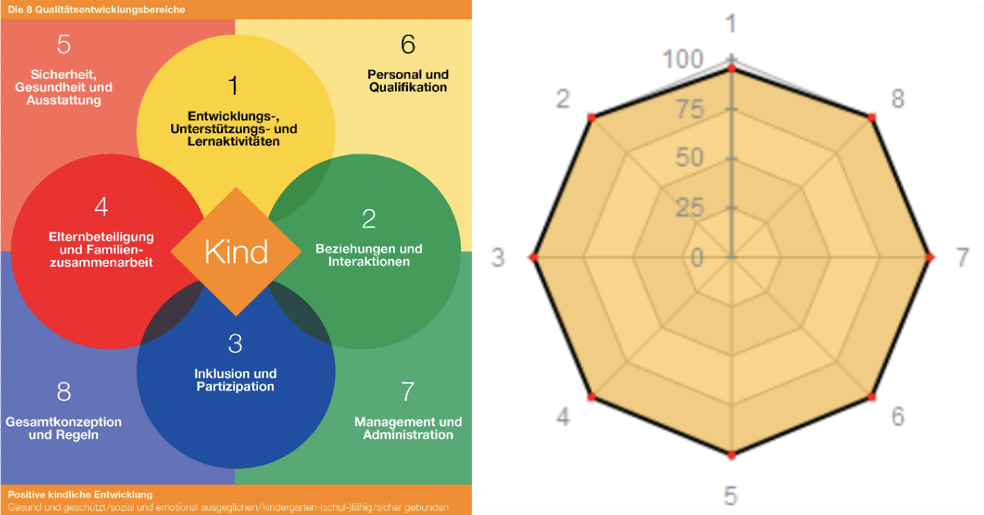 In der Re-Zertifizierung 2025 haben wir in fast allen 8 Qualitätsentwicklungsbereichen 100% erreicht. Wir sind stolz auf dieses Ergebnis!